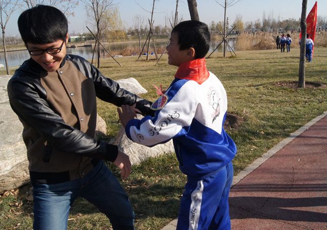 關于“想法的多與少”,陳招勇在大二時有一個典型的事例。當時延河的很多積極分子都在申請加入隊長團,以期能夠獨立負責一個領域的工作,陳招勇卻認為自己的能力還不足以承擔“隊長團”層面的工作。在換屆選舉中,他選擇從自己熟悉的領域入手,獲選擔任延河校園服務部部長,在工作過程中,他積極與房山區殘聯取得聯系并獲得相關支持,帶領部門的四十余名同學堅持每周前往房山區拱辰街道社會福利中心為殘疾人帶去關懷和溫暖。一年下來他所在的部門骨干志愿者人數最多,活動最豐富,得到師生的一致認可。