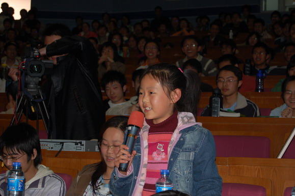 在許多人心目中,洪戰輝是非常高大的。但是,當許多學生見到洪戰輝本人后,都流露出了驚訝的表情。洪戰輝讀懂了同學們的表情,因而他在演講一開始就說道:“我不擔心自己的個頭不高,我只是覺得自己的知識和能力不夠高,但是,我希望學習,我希望用自己的知識和能力,把自己墊高!”這樣的開場白立即迎來了全場熱烈的掌聲。洪戰輝從自己的童年生活開始講起,回顧了自己的成長經歷,他說:“我小時候只懂得簡單地想問題,想一個人只要有飯吃,就能夠生活,只要能夠生活,就能夠掙錢,只要能夠掙錢,就可以去學習,只要能夠學習,就能夠提高自己。”