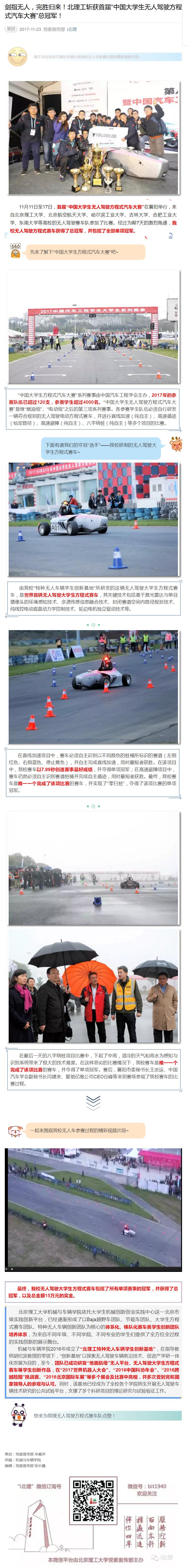 【微網互動】劍指無人,完勝歸來!北理工斬獲首屆“中國大學生無人駕駛方程式汽車大賽”總冠軍!