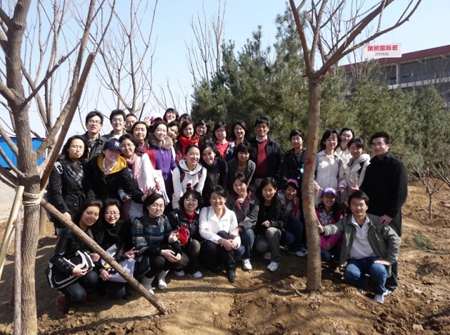 2008級學(xué)生在良鄉(xiāng)校區(qū)種植紀(jì)念樹后合影