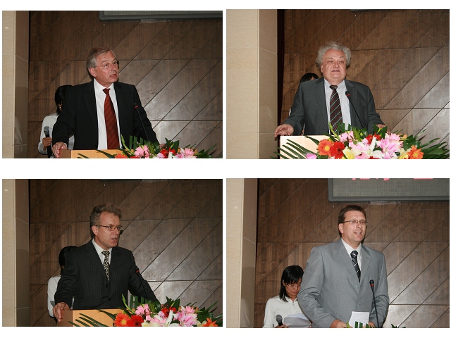 中心德方主任、卡爾斯魯厄大學文學研究所所長烏韋•亞普教授(Uwe Japp)以及中心科研顧問、斯圖加特大學哲學-歷史學院院長、現代德語文學研究所所長霍斯特•托美教授(Horst Thomé)分別就中心未來的發展方向、合作領域、合作方式等進行了闡述;德意志聯邦共和國駐華使館公使銜文化參贊馮•馬丁先生(Martin Fleischer),德意志學術交流中心主任韓北山先生(Stefan Hase-Bergen)、德國科學基金會中德科學中心德方副主任趙妙根教授以及歌德學院(中國)德語教學合作處主任胡朵拉(Cordula Hunold)博士分別向“德國語言文化研究中心”的成立表示衷心的祝賀。
