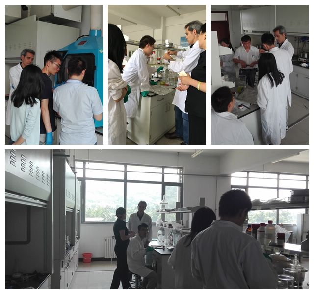 同時,Malucelli教授還深入阻燃實驗樓,就近年來廣受關注的纖維/織物的層層自組裝技術和溶膠凝膠阻燃技術進行了為期兩周的詳細的實驗指導,為研究生們答疑解惑,并結合相關研究中的關鍵問題和師生們進行了熱烈的研討。Malucelli教授是一位治學嚴謹而又不失幽默和熱情的學者,講學期間教授飽滿的科研激情不時地感染著在座的每一位聽學者。他幽默而又嚴謹的講學風格帶動了研究生們的熱情,而他對專業技術領域的真知灼見也令在座的研究生由衷欽佩。學生們紛紛表示Malucelli教授的科研理念和嚴謹的學術態度對自己以后的學術生涯有很大的指導意義。