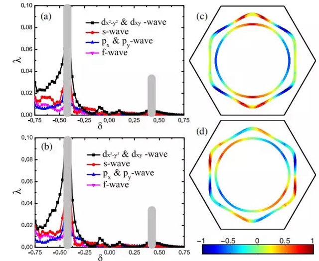 今年三月,美國麻省理工學院博士生曹源與其導師Jarillo-Herrero等人在Nature發表背靠背長文,以報道他們在其新近合成的魔角雙層石墨烯中所發現的非常規高溫超導現象,在整個凝聚態物理領域引起了廣泛的關注。目前,該體系的超導機理尚不明確。北理工楊帆教授等通過細致分析實驗現象,首次提出“交換密度波漲落”的超導機理?;诖擞^點,他們首次采用微擾論對材料的宏觀性質作了系統的微觀理論計算,得到的結果和實驗觀測的多個方面定性符合。該觀點受到魔角石墨烯研究領域的廣泛認同和跟進,成為該研究領域目前最具影響力的觀點之一。同時,論文首次將平帶中的Van-Hove 奇異性與費米面嵌套(FS-nesting)和曹源等人在實驗中看到的現象聯系起來。這一開創性的觀點在該領域得到了之后大多數研究組的認同和采納。