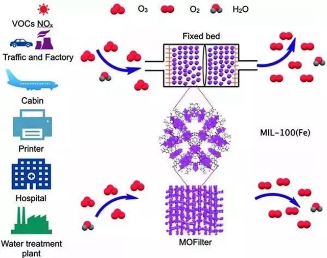 近日,在北京理工大學王博教授、陳世稆教授和馬小杰助理教授團隊(共同通訊作者)帶領下,提出了一種含鐵金屬有機框架MIL-100(Fe),用于去除臭氧。相關成果以題為“An Iron-Containing Metal–Organic Framework as a Highly Efficient Catalyst for Ozone Decomposition”發表在國際頂級期刊Angew. Chem. Int. Ed.上。