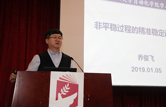 喬俊飛教授的報告題目為《非平穩動態系統平穩運行控制方法》,報告以城市污水處理過程為例,分析了非平穩系統的運行特點及對控制方法的挑戰,進而提出了一種自組織控制方法,解決了這個復雜過程控制難題,實踐應用證明,自組織控制方法是解決非平穩系統控制的有效方法。