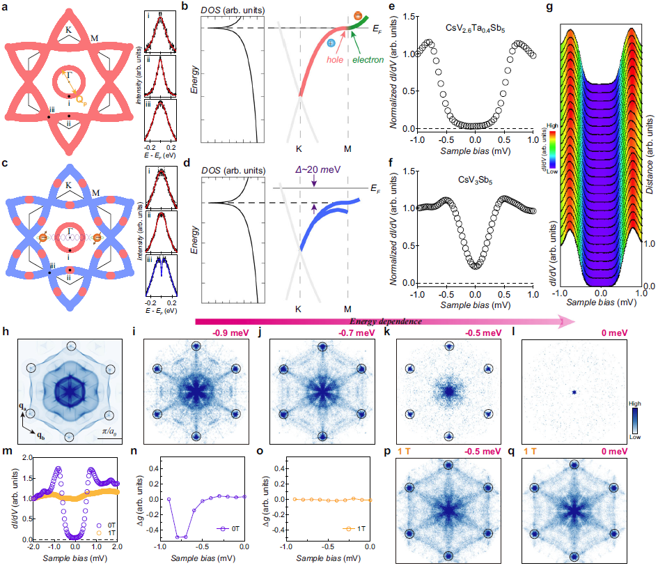 近日,北京理工大學物理學院王秩偉研究員、姚裕貴教授團隊,與中國科學技術大學何俊峰教授、喬振華教授,以及中科院物理研究所高鴻鈞院士等人合作在《自然通訊》(Nature Communications)發表了對籠目結構超導材料CsV3-xTaxSb5中范霍夫奇點(von Hove Singularity, VHS)的研究。