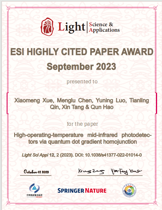 北京理工大學郝群教授團隊在室溫運行中波紅外探測器研究方面取得突破性的進...