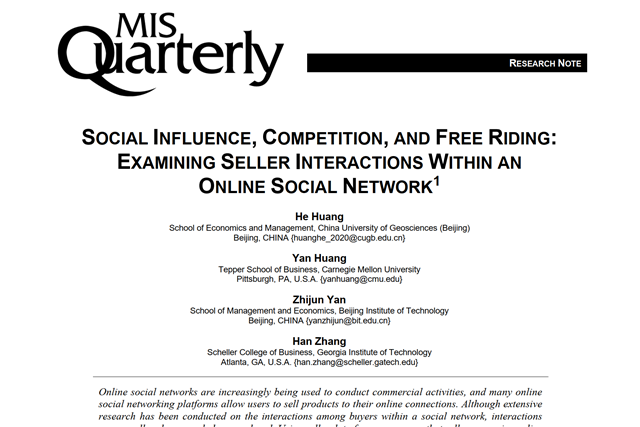 近日,北理工管理與經(jīng)濟(jì)學(xué)院管理工程系顏志軍教授、畢業(yè)生黃鶴博士與卡耐基...