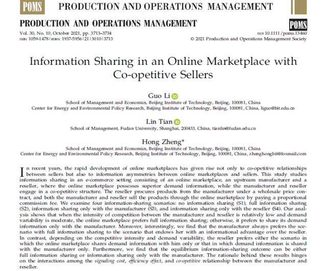 近日,北理工管理與經濟學院李果教授及鄭鴻博士與復旦大學管理學院田林副教...