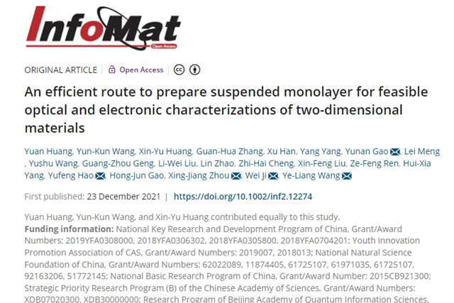 近日,北京理工大學黃元、王業亮教授團隊在二維材料懸浮結構方面取得研究成...