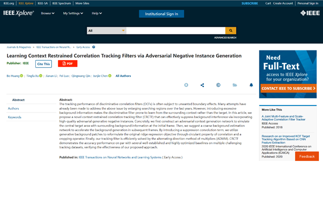 近日,北京理工大學光電學院許廷發科研團隊在對抗學習相關跟蹤領域取得新進...