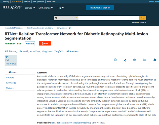 近日,北京理工大學光電學院許廷發科研團隊在眼底醫學圖像處理領域取得新突...