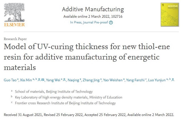 近日,北京理工大學材料學院夏敏教授、羅運軍教授課題組在含能材料相關光固...