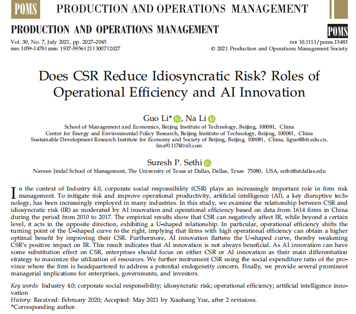 近日,北京理工大學(xué)管理與經(jīng)濟(jì)學(xué)院李果教授團(tuán)隊(duì)的研究成果《Does CS...