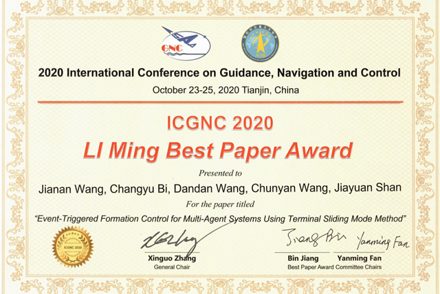 日前,北理工宇航學院研究生閉昌瑀在2020年國際制導、導航與控制學術會...