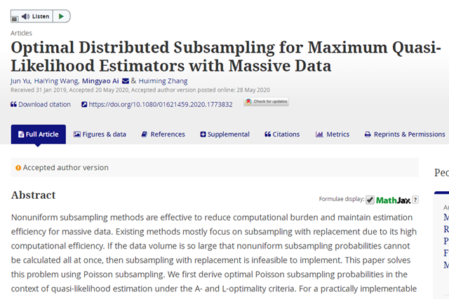 日前,北京理工大學數學與統計學院虞俊助理教授及其合作者在統計學四大國際...