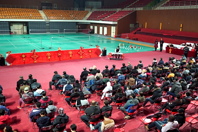 本次學(xué)生春節(jié)聯(lián)歡活動設(shè)計了文藝表演環(huán)節(jié)、抽獎環(huán)節(jié)和游戲環(huán)節(jié)。現(xiàn)場既有猜謎、剪紙、套圈等傳統(tǒng)游戲,也有平板支撐、搶椅子、你演我猜、翻牌、數(shù)七等競技活動。學(xué)校準備了智能手環(huán)、耳機、鋼筆、U盤、鼠標、紀念撲克等豐厚的獎品,受到同學(xué)們的歡迎,現(xiàn)場歡聲笑語、氣氛喜慶熱烈。