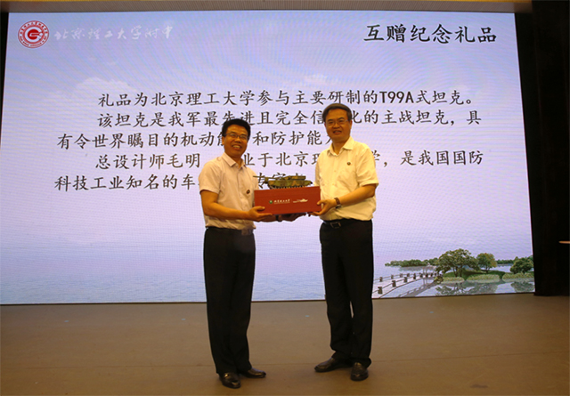 北京理工大學(xué)附屬中學(xué)校長任志瑜代表全校師生對張軍一行的到來表示熱烈歡迎。他在致辭中充分肯定了北京理工大學(xué)對國家建設(shè)和國防事業(yè)作出的卓越貢獻(xiàn),希望兩校同根共榮的深厚友誼長久保持下去。兩校校長互相贈送了北理工特色紀(jì)念品和中學(xué)生國際大賽的獲獎作品。