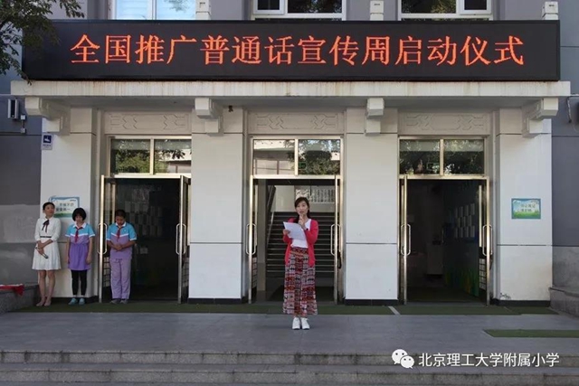 “同學(xué)們不僅要了解漢語是世界上最美麗、最古老、最有智慧的語言,更要明白語言代表著一個國家,當今漢語在國際上占有了越來越顯著的地位,小學(xué)生要以寫好規(guī)范字,說好普通話為己任。”9月10日,北理工附小教學(xué)副主任黃穎在主題為“愛中華文化、做推普使者”的國旗下講話中說到。