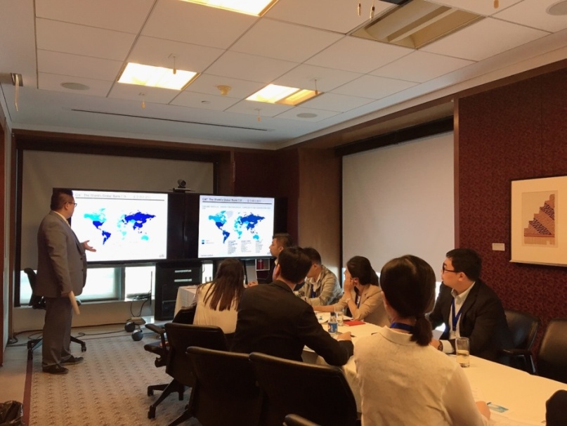 同學(xué)們?cè)诘诌_(dá)華盛頓后,訪問了世界銀行集團(tuán),并與世界銀行官員進(jìn)行了座談。通過與世行人員的交流,同學(xué)們了解到世行集團(tuán)通過向發(fā)展中國(guó)家提供低息貸款、無(wú)息信貸和贈(zèng)款來幫助這些國(guó)家克服窮困,在減輕貧困和提高生活水平的使命引導(dǎo)下發(fā)揮著獨(dú)特的作用。中國(guó)于1980年在世行恢復(fù)席位,現(xiàn)已成為世行第三大股東,享有6% 的投票權(quán),并從最開始的3名員工發(fā)展到如今400余位員工。