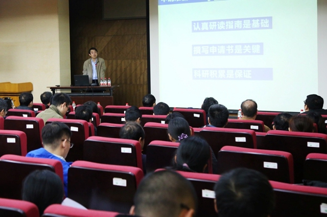 本次會議邀請了孫健教授(獲批聯(lián)合基金重點支持項目)、蔣志宏教授(獲批重點項目)、張韞宏教授(獲批重點項目、重大研究計劃重點支持項目)3位重點類項目獲得者與大家進行交流和經(jīng)驗分享。三位老師結(jié)合各自的研究領(lǐng)域、工作實際和項目申報經(jīng)驗體會,向與會教師作了交流報告,提出了很多中肯有益的建議。孫健教授分享了聯(lián)合基金的政策、特點、申報要點、團隊組建等內(nèi)容,認為聯(lián)合基金是國家自然科學基金項目中性價比最高的項目,具有金額大,競爭小,資助率高的特點,鼓勵老師們積極申報。蔣志宏教授結(jié)合自己重點項目的申報經(jīng)驗,從如何寫重點項目指南,寫項目申請書的技巧,如何醞釀籌備一個重點項目等方面與現(xiàn)場教師進行了交流。張韞宏教授分享了自己的科研經(jīng)歷,從研究方法的總結(jié)、創(chuàng)新性的體現(xiàn)、增加學術(shù)影響力和學術(shù)自信的途徑,多角度介紹了如何總結(jié)每一階段成果并融入到自然基金項目申請中,進而深入研究的過程。