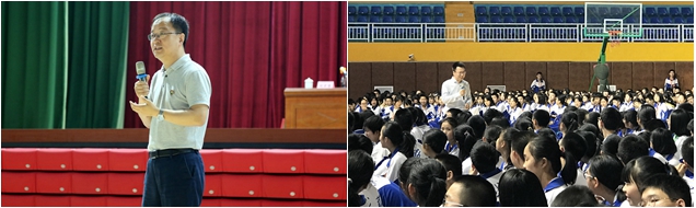 張東做了精彩的招生宣講。他用風趣、幽默的語言介紹了北京理工大學歷史背景、專業特色、人才培養、就業深造、招生政策等,全方位地展示了北理工的辦學特色和文化內涵。馮慧華做了題為《兼具極致技術與精美工藝特征的人類杰作——漫談車用動力》的專業講座。他以中學生能夠理解的語言,生動地講述了汽車動力系統的前世今生與未來發展。在場的1400多名中學生興致勃勃,宣講和講座多處引起同學們的共鳴,掌聲不斷、氣氛熱烈。