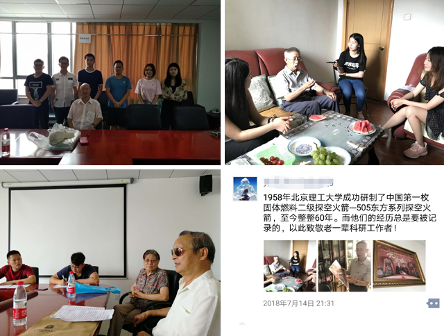 2018年,正值我校獨立研制的中國第一枚固體燃料二級探空火箭——“東方”系列探空火箭發(fā)射成功60周年,為深入挖掘校史,傳承紅色基因,弘揚軍工文化,在黨委宣傳部、離退休工作處/離退休教職工黨委和學(xué)校出版社的支持下,宇航學(xué)院黨委組織學(xué)院學(xué)生黨支部開展了本次主題黨日活動,活動采取登門拜訪,并有針對性的開展口述史料采集。在本次活動中,共有1個本科生黨支部和9研究生黨支部參與其中,共拜訪了17位參與“505”探空火箭研制的離退休教師。