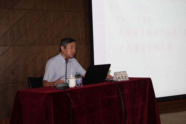 2018年9月25日下午,學校在圖書館報告廳開展新提任中層領導人員集體廉政談話。紀委書記楊志宏代表學校黨委和近期新提任中層領導人員、近期轉崗的部分中層領導人員進行了題為《認真履行全面從嚴治黨責任,嚴格遵守黨的紀律,做忠誠干凈擔當的好干部》的集體廉政談話。各基層黨委、黨總支、直屬黨支部紀檢委員參加會議。