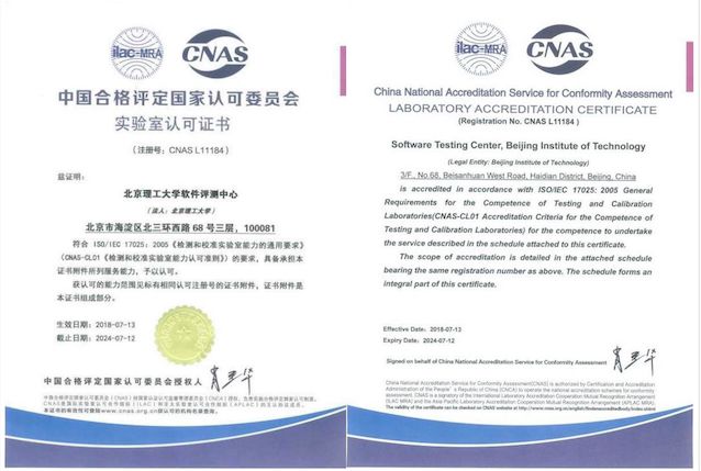 北京理工大學軟件評測中心順利取得CNAS認可證書