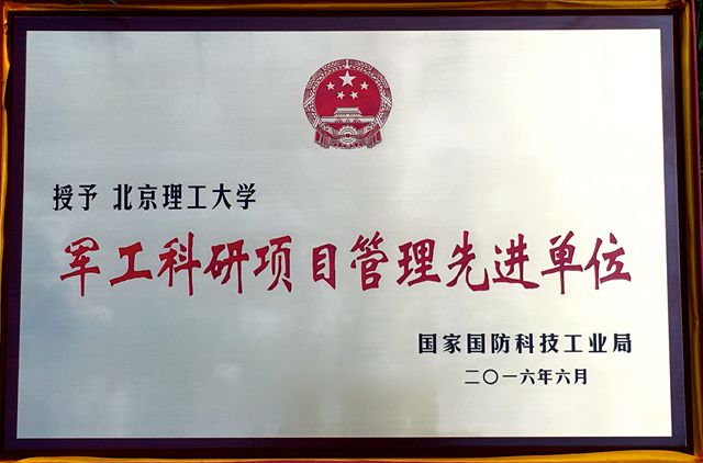 北京理工大學榮獲“軍工科研項目管理先進單位”表彰