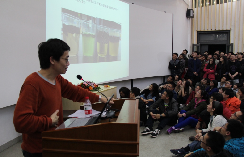 講座開始之前,報(bào)告廳里已座無虛席。伴隨著熱烈的掌聲,黃西老師走上講臺(tái)。隨著他拿出手機(jī)為現(xiàn)場(chǎng)同學(xué)們拍照留念,現(xiàn)場(chǎng)氣氛瞬間升溫。黃西首先和同學(xué)們分享了他在美國(guó)留學(xué)的經(jīng)歷和回國(guó)后的趣聞,皆是平凡小事,卻處處“暗藏玄機(jī)”,笑點(diǎn)不斷。隨后他調(diào)侃了現(xiàn)實(shí)生活中的一些不良現(xiàn)象,并鼓勵(lì)同學(xué)們要樹立正確的成功觀和價(jià)值觀。