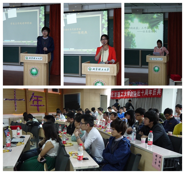 2014年4月27日,新長城北京理工大學自強社于我校良鄉(xiāng)校區(qū)理學樓B座106舉辦社團十周年慶典。參加慶典的有:學生工作處姜竺杉、自強社歷屆社長、以及來自中國傳媒大學自強社的代表和我校自強社的全體成員。