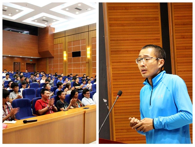 在之后的提問環節中,同學們積極踴躍。面對大家的疑問,于嘉老師展現出了央視解說員的絕頂口才,生動形象地回答了在場觀眾的一個又一個問題,不時引起全場觀眾的掌聲和歡笑。講座結束后,于嘉老師帶領大家去北湖跑步并進行了合影留念。