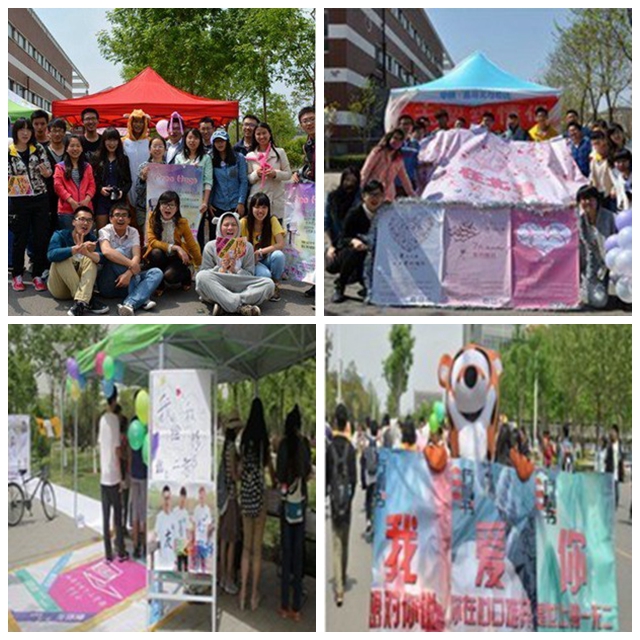 在各學院開展的活動中,信息與電子一學部舉辦“愛在北理•七天契約情侶”、 “‘微關愛•漂流瓶’之free hugs”、 “‘校園微公益•善行樂我心’之減壓節”、“北理風箏繪”、“拔河賽”等新穎豐富的活動。信息與電子二學部舉辦 “‘微關愛•漂流瓶’之free hugs”、“說一次,我愛你”、“我衫我繪”等活動。