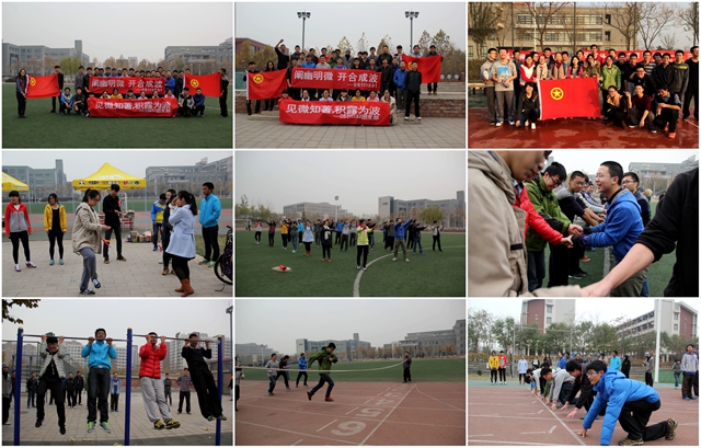 05111331團(tuán)支部、05111332支部在操場共同開展了“憶童年”主題活動(dòng),踢毽子、跳大繩、百米跑,兩個(gè)支部的同學(xué)在汗水中享受運(yùn)動(dòng)的快樂,在比賽中體驗(yàn)合作與競爭。04011305團(tuán)支部舉行了“生命不息,運(yùn)動(dòng)不止”主題團(tuán)日活動(dòng),跑步熱身、跳大繩、羽毛球?qū)梗缮璧绞炀殻瑥莫q豫到熱情,同學(xué)們在追逐中熱情高漲,你追我趕,用笑鬧聲歡呼聲溫暖了這個(gè)寒冷的冬日。05611302聯(lián)合05611301支部舉辦了激動(dòng)人心的友誼籃球賽,一次次成功的投籃、籃下?lián)寯酂o不體現(xiàn)出團(tuán)隊(duì)的默契配合,中場的女生投籃巾幗不讓須眉。