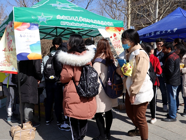 3月5日是學雷鋒紀念日和中國青年志愿者服務日。為吸引更多同學參與志愿服務工作,以實際行動傳播志愿精神、服務校園和社會發展、圓滿完成2019年“1+3”志愿服務任務,北京理工大學11個志愿公益類學生組織和社團在良鄉校區徐特立圖書館廣場聯合舉辦“學習雷鋒精神,爭做時代新人”宣傳教育活動,拉開了3月“青年志愿服務月”的序幕。