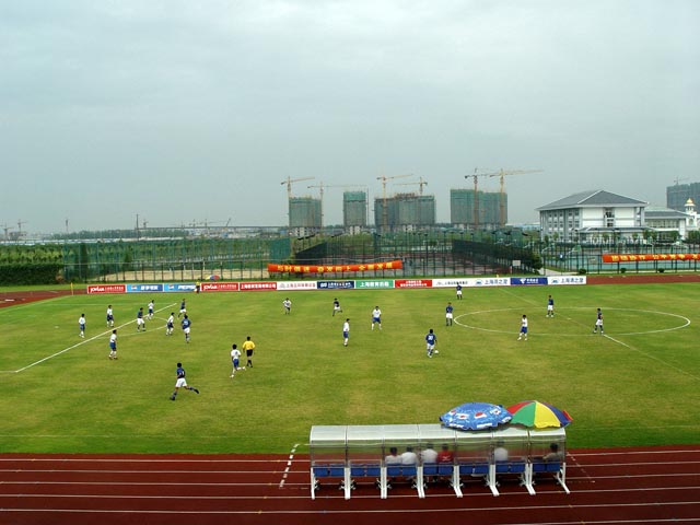 今天下午的八進四的比賽在上海外國語大學松江校區體育場內進行。
