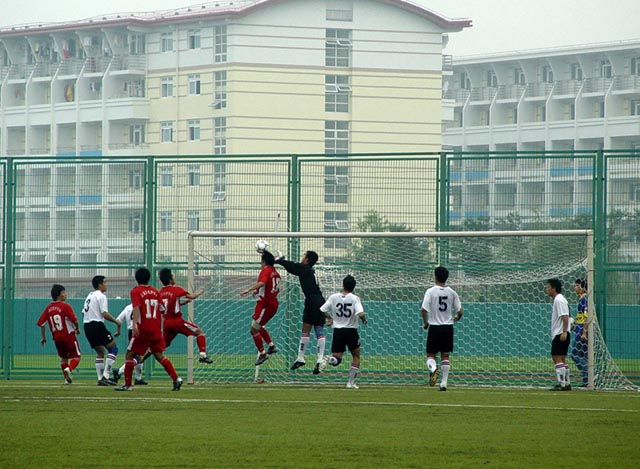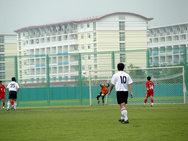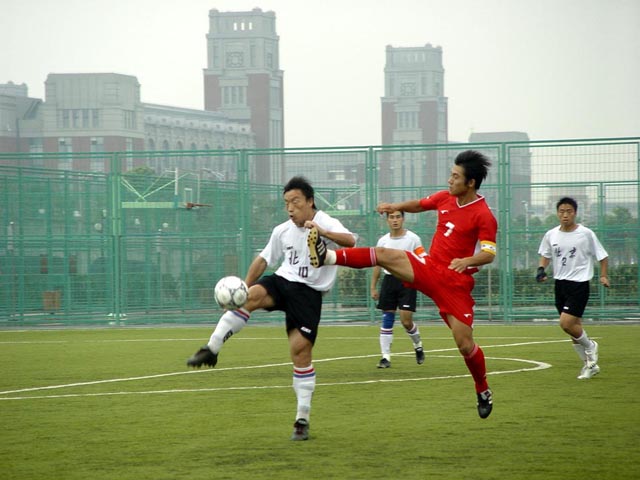 經過六天的激烈比賽依然充滿信心的我校足球隊今天在半決賽迎戰河北大學生足球隊。