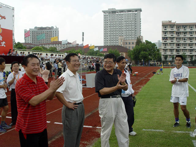 北京市副市長范伯元和我校黨委書記焦文俊親臨賽場為足球隊加油打氣。