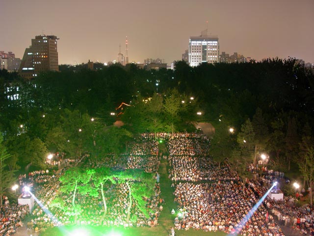 北京理工大學藝術節開幕式晚會現場把中心教學樓映襯得五彩繽紛。