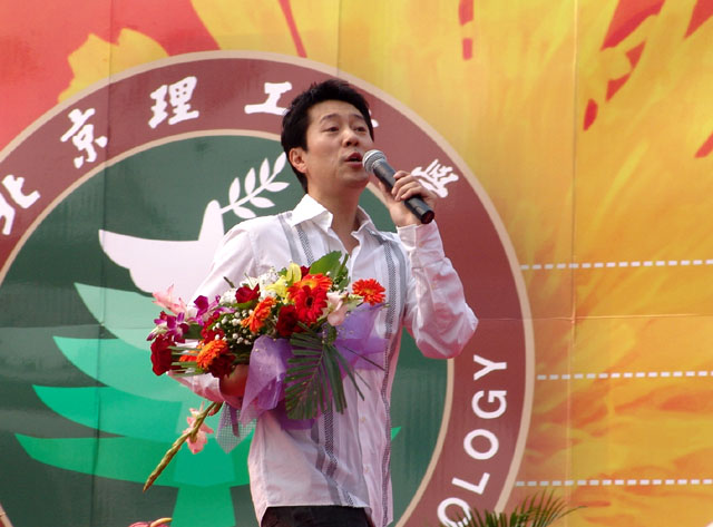 著名軍旅歌唱家劉彬帶來的鏗鏘有力的“當兵的人”,使在場的經歷過軍訓的廣大同學熱血沸騰。隨后,他還用優美的旋律演繹了國家副主席、我校校友曾慶紅同志祝賀校慶的詩詞。