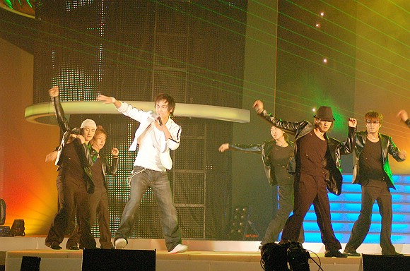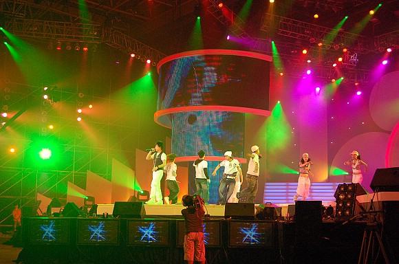 花兒樂(lè)隊(duì)和臺(tái)灣最新男生團(tuán)體元?dú)饨M合分別以《加油!好男兒》和《風(fēng)中少林》首先出場(chǎng),兩組大男生熱情、勁爆的歌曲立即攪熱現(xiàn)場(chǎng)氣氛。