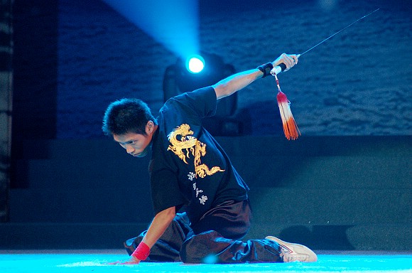 伴著節(jié)奏明快的歌曲《龍拳》,校武術(shù)隊(duì)的出場(chǎng)動(dòng)作也一鳴驚人。