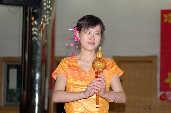 同學們在晚會上展現了各民族特有的服飾、舞蹈、歌曲等。