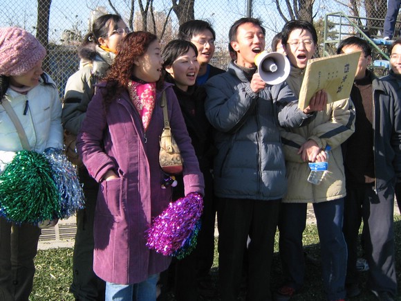 北京理工大學足球隊員與啦啦隊合影