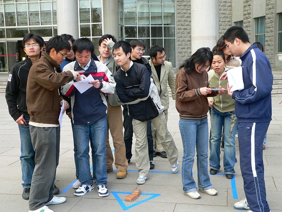 本次比賽在教學區內設立了15個點簽處,42名研究生報名參加了比賽。比賽當天風力較大,這給參賽選手尋找目標點帶來不少困難。比賽進行得十分激烈,當選手們在遠處看到目標點的標志時,為了爭取時間,都選擇了直線路程,甚至跨越過障礙物,以期能比對手占有更大的優勢。從這一點看來,這次“迷你”型的定向越野比賽倒真是有了幾分“職業越野賽”的氣氛。由于較高的氣溫和大量的運動,各位選手在比賽中都臉色通紅汗流浹背,甚至有選手因為跨越障礙而受輕傷,但這并沒有影響選手們渴望勝利的心情。