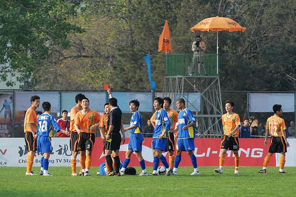 第40分鐘,舜天在禁區邊緣地帶爭搶時倒地,裁判判罰江蘇舜天獲得點球,32號外援巴洛斯一蹴而就將比分擴大為2-0。這次爭議判罰也引起了愛國者隊主帥曹限東的強烈不滿。半場結束前雙方的激烈拼搶曾經導致場上隊員連續的人仰馬翻。