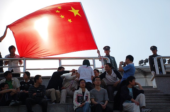 在鮮艷的五星紅旗下,大家都盡自己所能為災區祝福和祈禱。