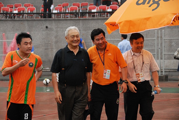 盡管由于國家隊督導組赴天津督戰讓主角之一的金志揚不能親自當場觀戰,這次兩位“教父”協商一致,周六還是專程把“教父的教父”,曾經擔任過國家隊主教練、總教練、國家訓練總局副局長、中國足協主席的年維泗老先生請到了球場,來看這一場意義特別的比賽,這是學生給老師的“匯報演出”,可能現在的水平不是最高,但是,場上將注定激情和才華,注定給每一個觀戰者以新的希望。
