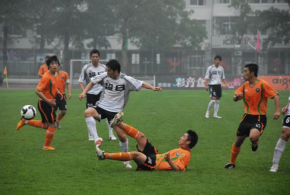 6月14日下午,一場引人矚目的大戰又將在北理工的主場進行,北京愛國者大學生足球隊將迎戰前來挑戰的上海東亞足球隊,由于北京從夜里就下起小雨,直到比賽開始雨依然沒有停,所以雙方不得不在北理工的主場面臨一場雨戰。這場比賽之所以引人矚目,是因為雙方的“掌門人”分別是徐根寶和金志揚,十幾年前,這兩位昔日在甲A的賽場上指揮申花和國安雙雄爭霸,并被足球界稱為“南徐北金”的流派代表人,后來都曾經擔任過國字號的教練,都有過輝煌的時刻。